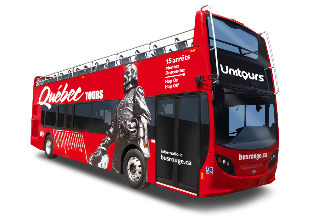 Nos Bus Rouges avec pont supérieur à découvert sont parfaits pour apprécier la beauté de Québec sous tous les angles.